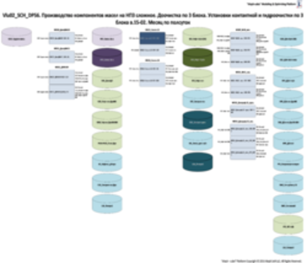 Селективной очистки компонентов масел, состоящей из установок селективной очистки масел «WS24_Сел.оч.24», «WS25_Сел.оч.25», «WS26_Сел.оч.26», потребляющие десафальтизат и вакуумные погоны для производства рафинатов различных видов: «RF1_Раф-т 1 в/п» из 1 вакуумного погона «VP1_Смесь 1в.п.» с выработкой попутного продукта – экстракта «EXL_Экстр. дист. м/в»; «R25_Раф-т 2в/п (SN)» из 2 вакуумного погона «VP2_Смесь 2в.п.» с выработкой попутного продукта – экстракта «EXL_Экстр. дист. м/в» «RF3_Раф-т 3 в/п» из 3 вакуумного погона «VP3_Смесь 3в.п.» с выработкой попутного продукта – экстракта «EXD_Экстракт дист.»; «R4V_Раф-т 4в/п(SN-600)» из 4 вакуумного погона «VP4_Смесь 4в.п.» с выработкой попутного продукта – экстракта «EXD_Экстракт дист.»; «RFR_Раф-т ост» из деасфальтизата «DAS_Деасф/т» с выработкой попутного продукта – экстракта «EXT_Экстракт ост.». Каждый вид рафината выпускается на отдельной операции установки, причем установка могут выпускать несколько видов рафината, но одновременно может работать только на одной.