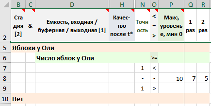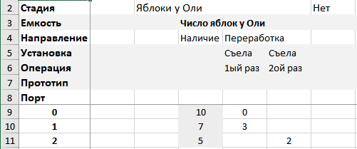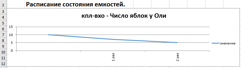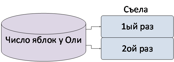 • Задано начальное значение яблок у Оли, т.е. считаем, что 10 яблок есть до начала процесса.