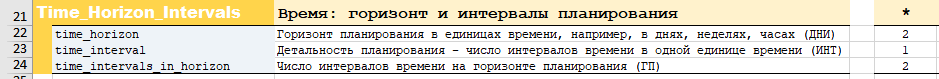 Рисунок. Фрагмент листа опций – горизонт планирования