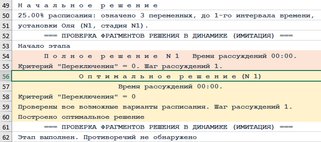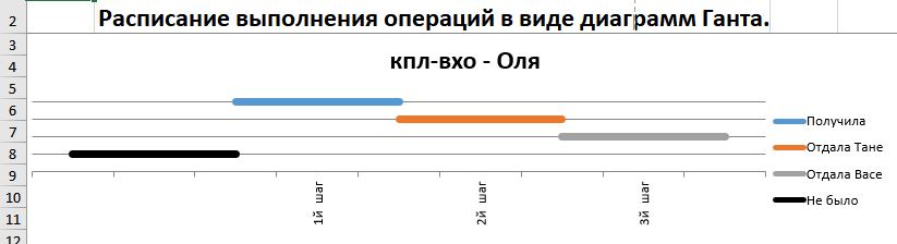Операции переключаются. Чтобы не загромождать диаграмму Ганта неинформативными фрагментами расписания выполнения операций, поменяем значения двух опций на листе «Опц» с 1 на 0:
