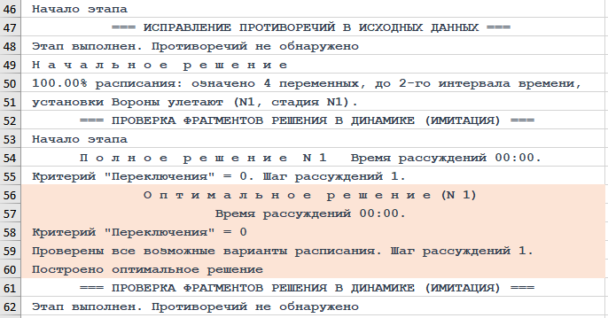Рисунок. Фрагмент трассы объяснений хода рассуждений Решателя DP