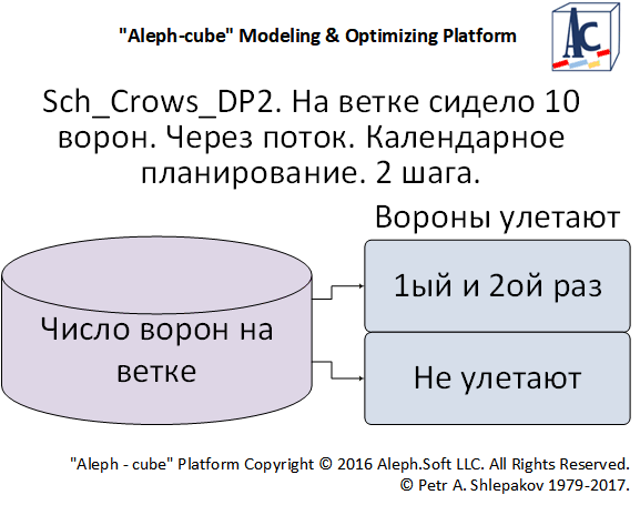 • Задача динамическая, календарного планирования, при постановке задачи в статике 2+3=5 ворон должны улететь сразу, в этом мало смысла.