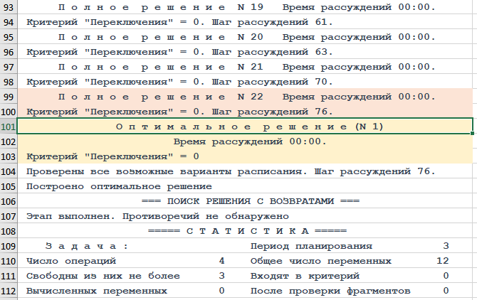 Результаты решения те же, что и в 02-03, не повторяем. Однако трасса объяснений хода рассуждений Решателя DP совсем другая.