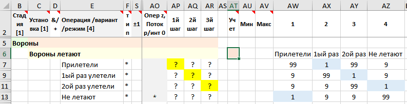 Но на листе установок «Уст» в колонке «Учет» минимума переходов в строке установки не «1», а пустая ячейка: