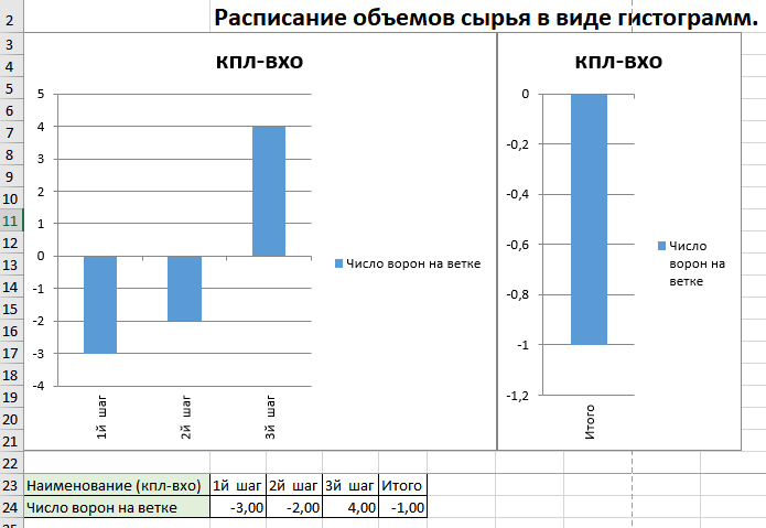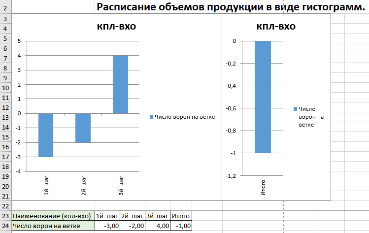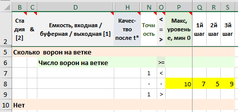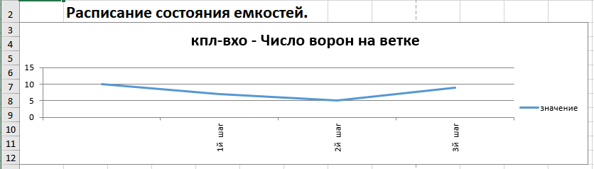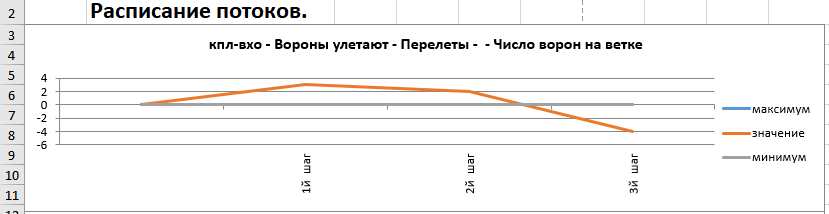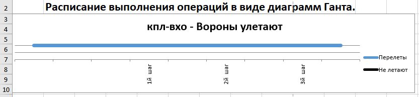 Все три шага описаны переменным от времени потоком. Операции при этом не переключаются. Поэтому, чтобы увидеть диаграмму Ганта для расписания выполнения операций, нужно поменять значения двух опций на листе «Опц» с 0 на 1: