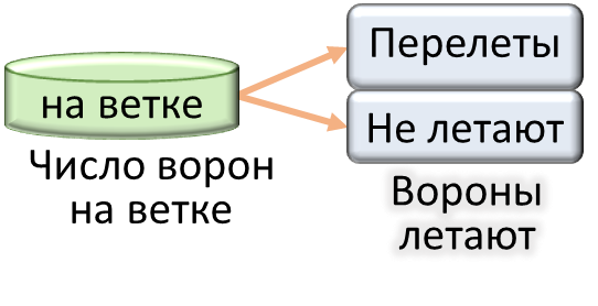 «Считаем ворон». Дано: Прилетели 10 ворон и сели на ветку. Сначала улетело 3 вороны, а потом улетело ещё 2 вороны. Определить: Сколько ворон на ветке?