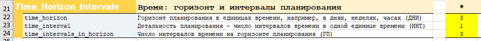 На листе опций – Горизонт планирования, 3 интервала на горизонте