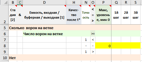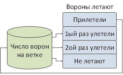• Начальное значение числа ворон на ветке – 0.