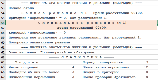 Операции переключаются. Чтобы не загромождать диаграмму Ганта неинформативными фрагментами расписания выполнения операций, поменяем значения двух опций на листе «Опц» с 1 на 0: