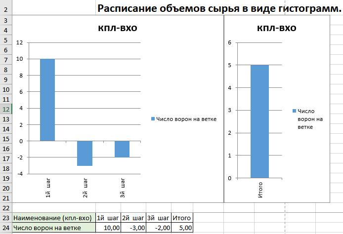 Рисунок. Расписание запасов в емкостях