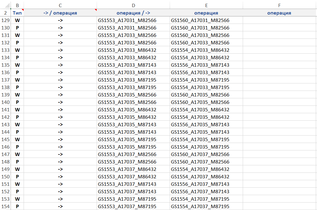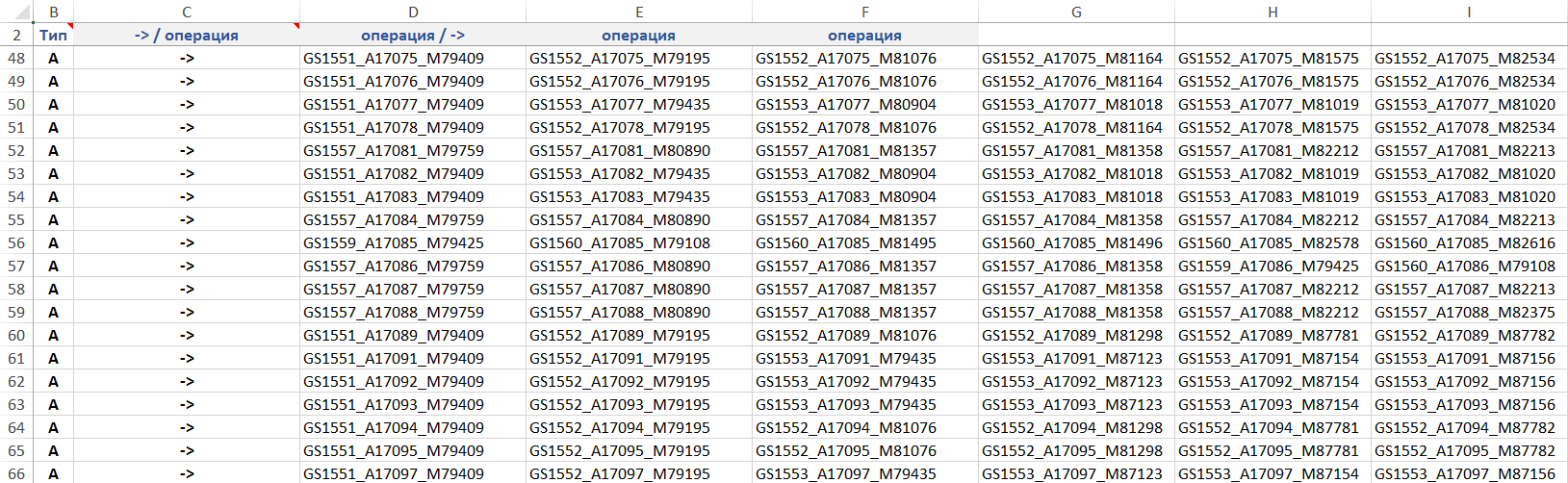 Рисунок. Фрагмент расписания выполнения операций