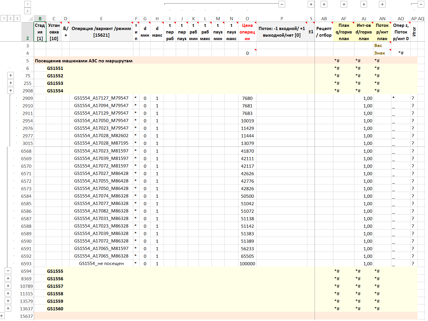 Далее исходными данными служат не АЗС и машины, а жесткие маршруты и бензовозы.