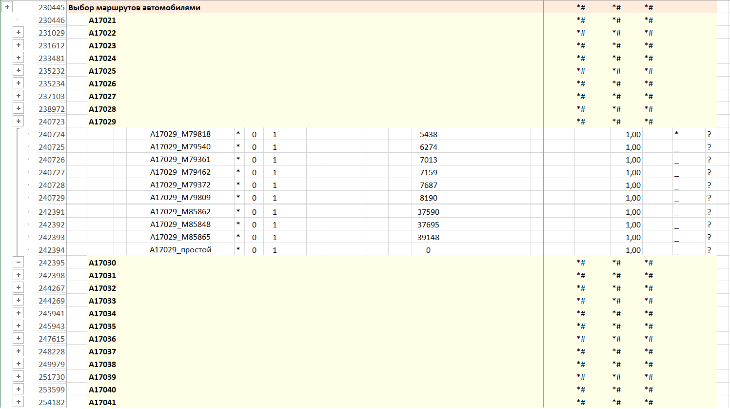 Возможна постановка задачи с жесткими маршрутами — сформированными заранее псевдо-рейсами, или гибкими — формируемыми на лету, в процессе оптимизации. В случае гибких маршрутов нужно запретить некоторым бензовозам доставку на часть АЗС. Возможно, это еще быстрее и эффективнее.