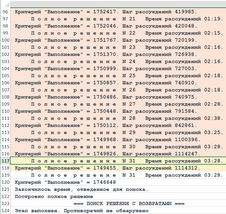 Рисунок. Фрагмент трассы объяснений хода рассуждений Решателя DP