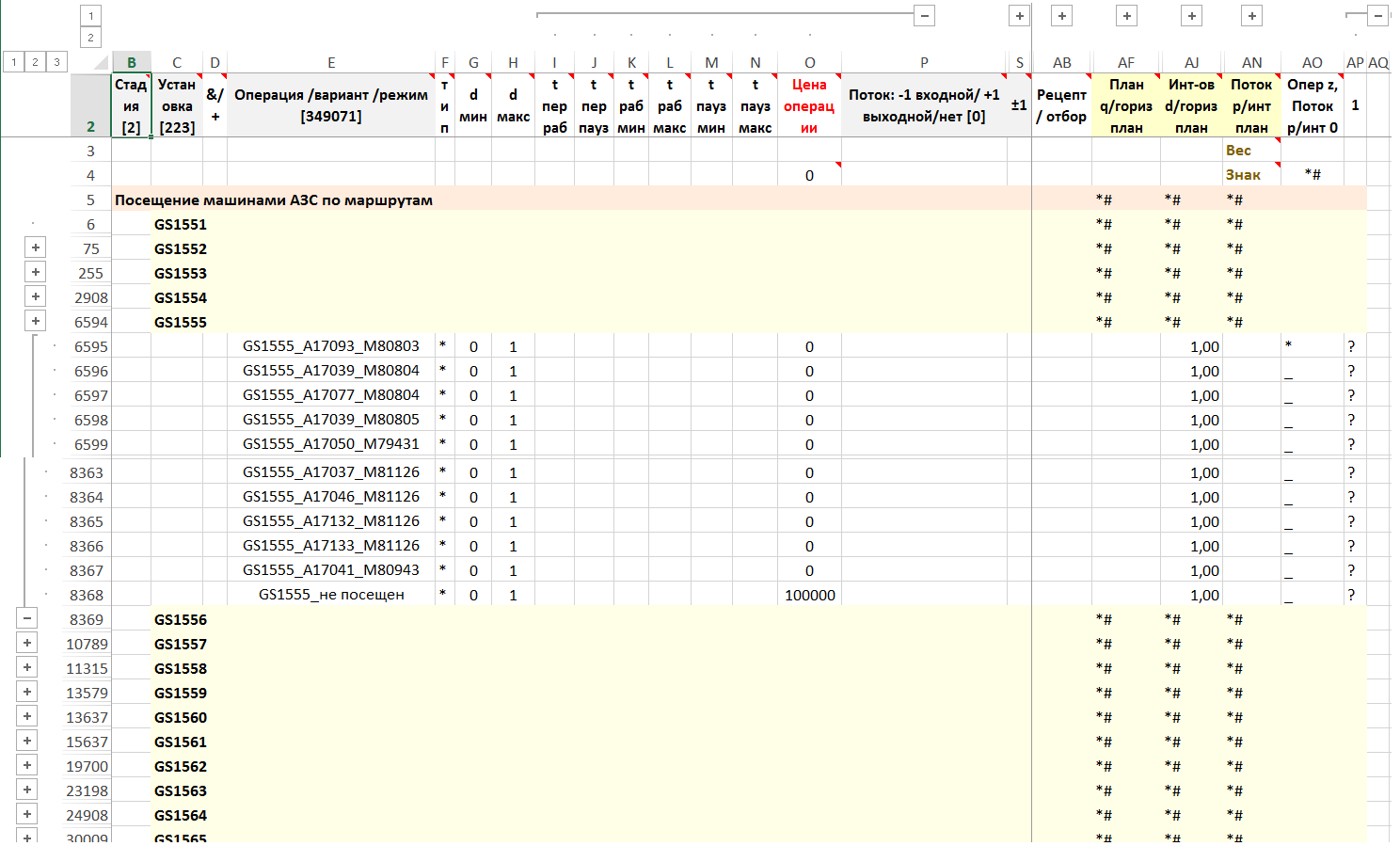Далее исходными данными служат не АЗС и машины, а жесткие маршруты и бензовозы.