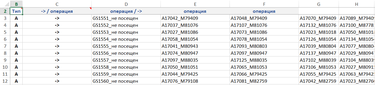 Рисунок. Фрагмент расписания выполнения операций