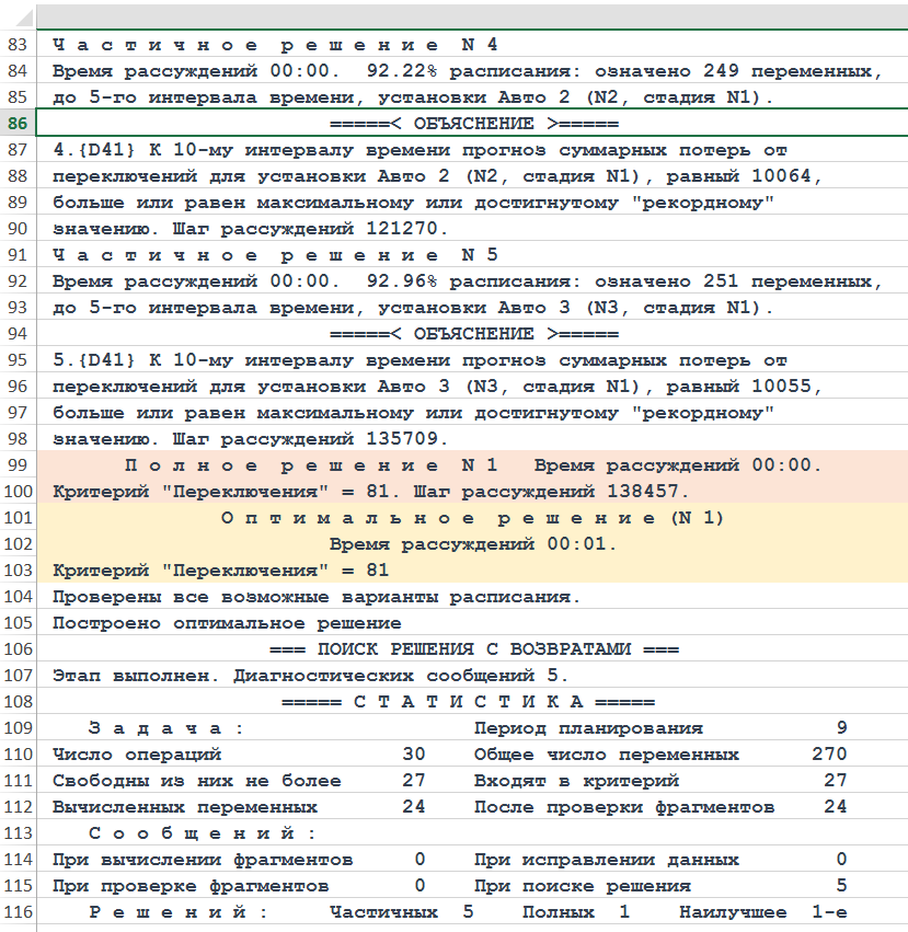Рисунок. Фрагмент трассы объяснений хода рассуждений Решателя DP