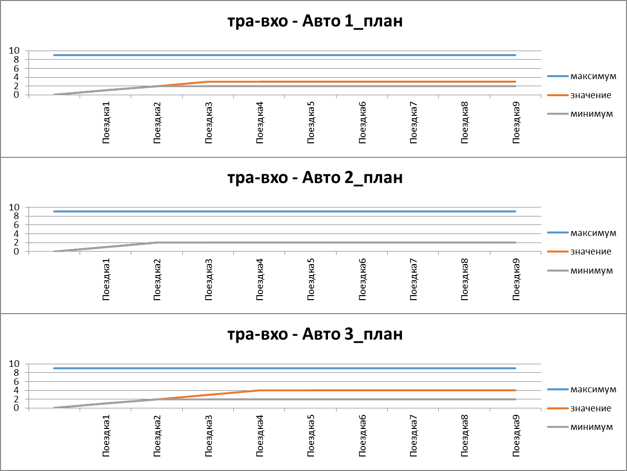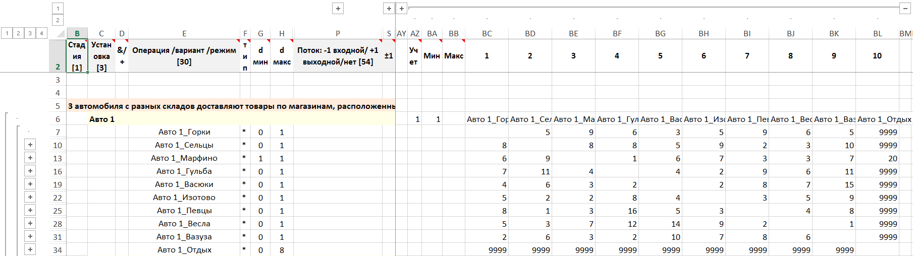 • Для каждого автомобиля задается минимальный/максимальный план по доставке, заданный через емкости Авто *_план