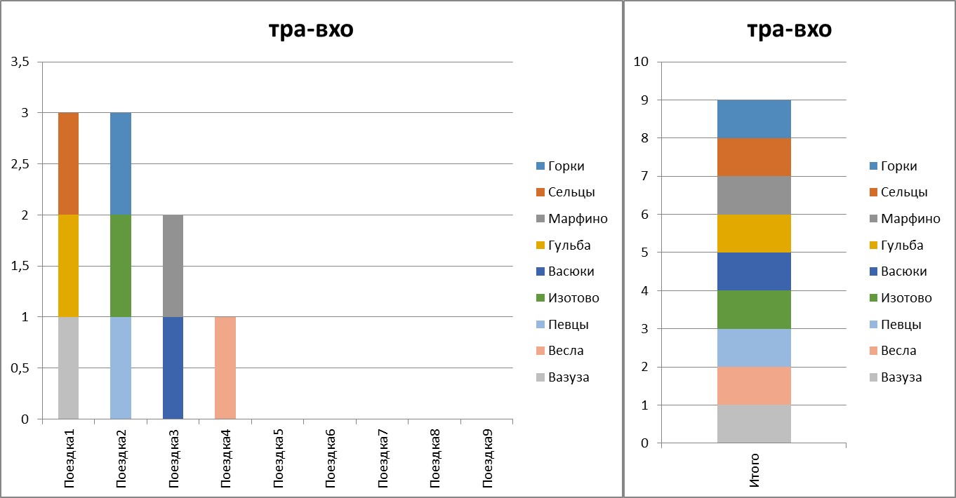 Посещенные автомобилями магазины и план по посещению для автомобилей.