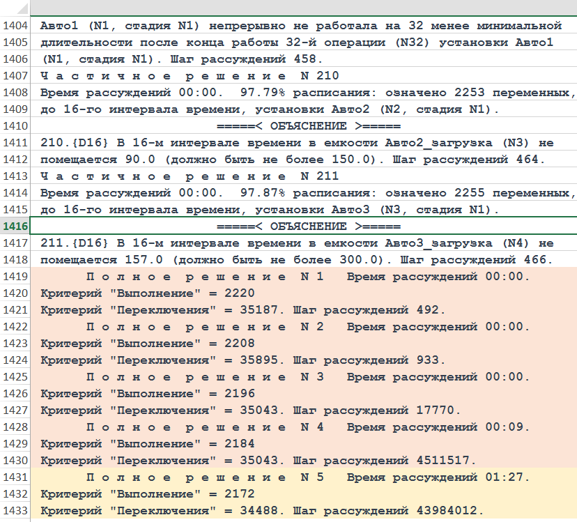 Рисунок. Фрагмент трассы объяснений хода рассуждений Решателя DP