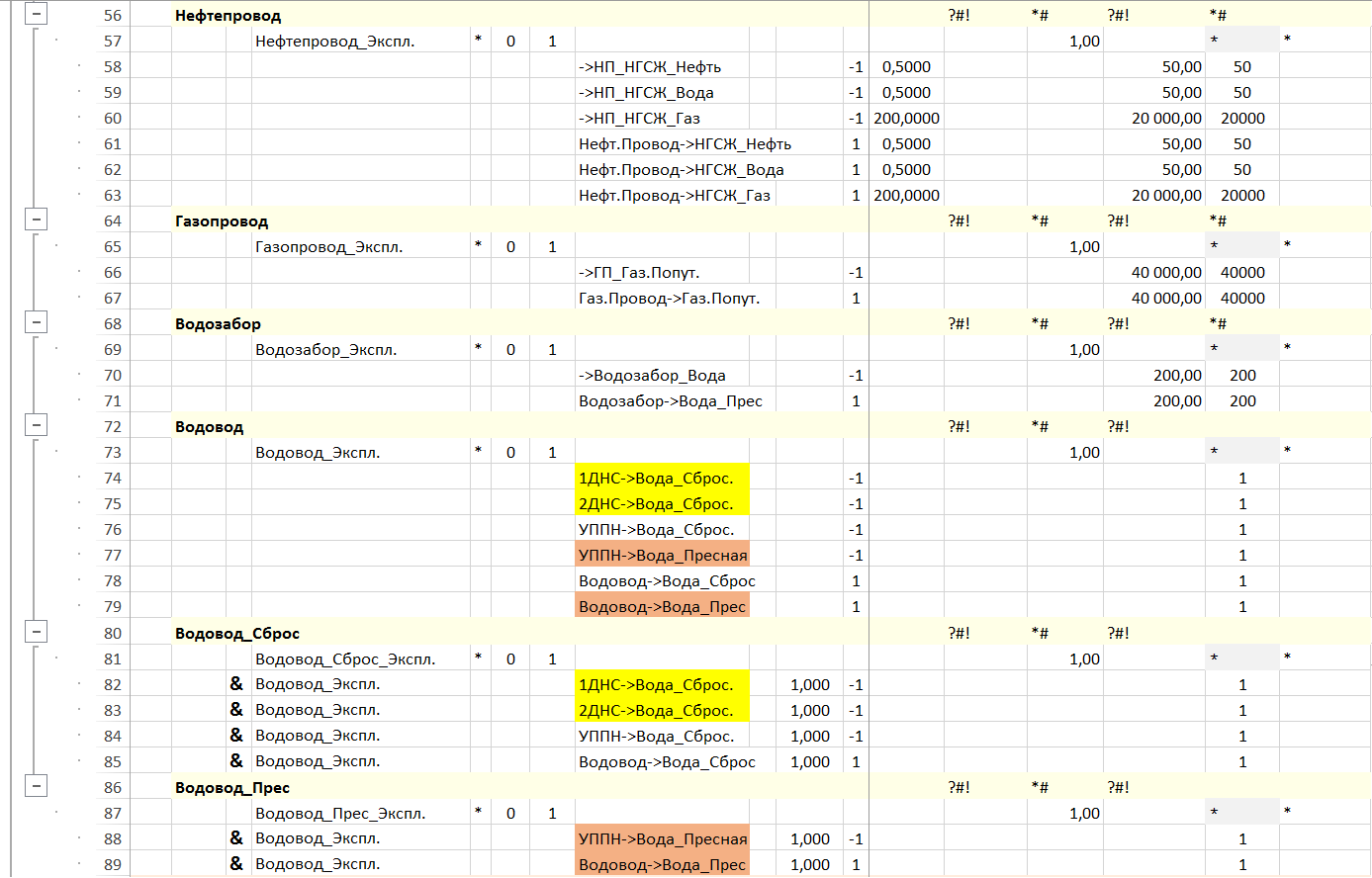 Нефтепровод, газопровод, водозабор, водовод и баланс по воде на водоводе.