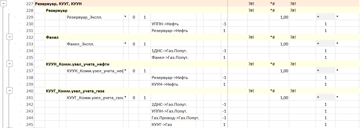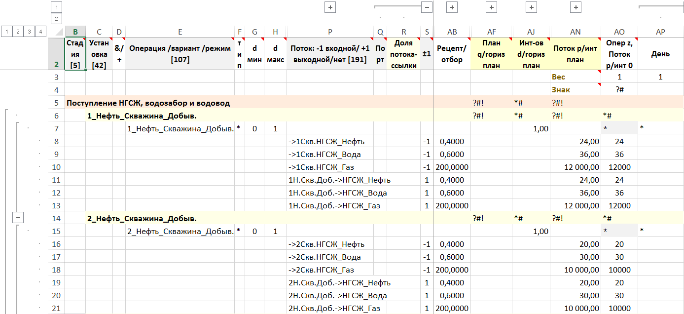 Каждый компонент НГСЖ выделяется явно и считается отдельно. Баланс по каждому компоненту в составе НГСЖ и НСЖ учитывается. Моделируются отдельными установками, содержащие ссылки и композиции потоков.