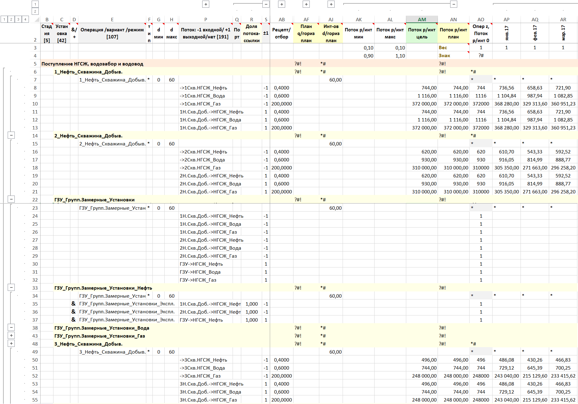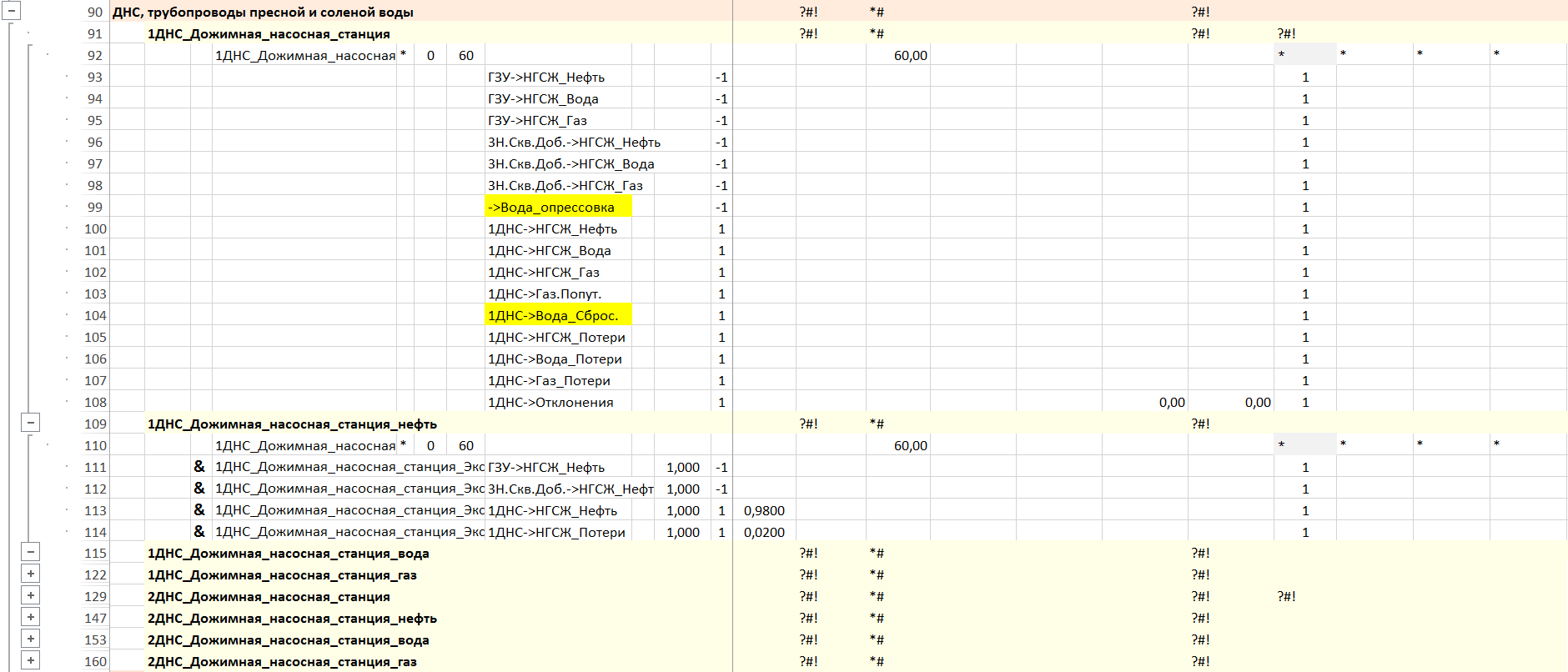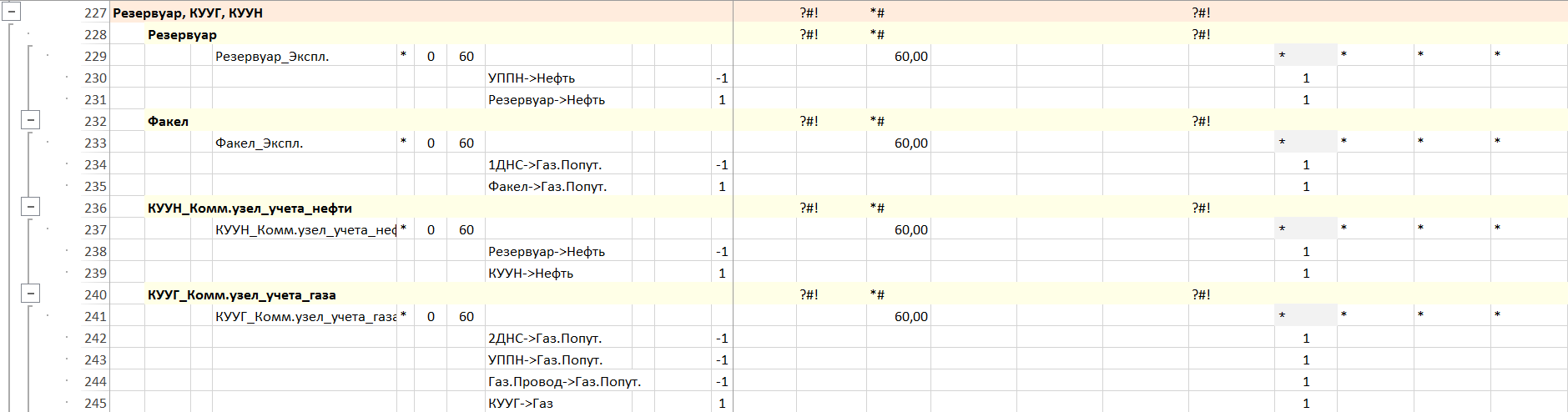 Каждый компонент НГСЖ выделяется явно и считается отдельно. Баланс по каждому компоненту в составе НГСЖ и НСЖ учитывается. Моделируются отдельными установками, содержащие ссылки и композиции потоков.