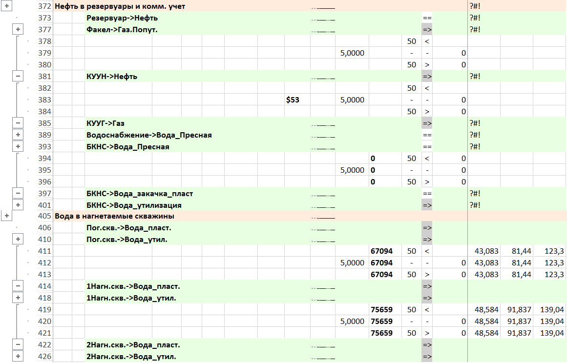 Нефтедобывающие скважины, групповые замерные установки, балансы по компонентам нефтегазосодержащей жидкости.