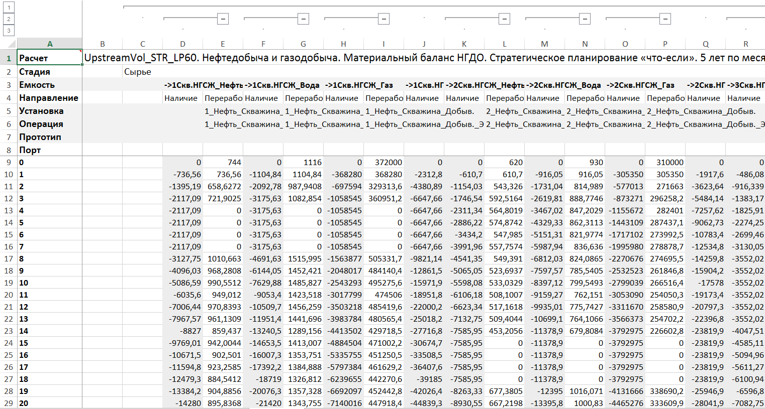 UpstreamVol_STR_LP60. Нефтедобыча и газодобыча. Материальный баланс НГДО. Стратегическое планирование «что-если». 5 лет по месяцам.