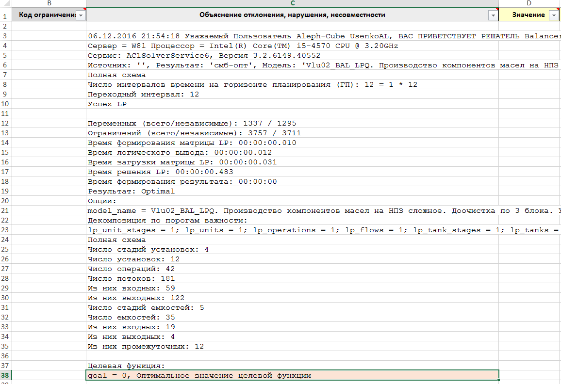 См. Решение Vlu02_BAL_LP12. Производство компонентов масел на НПЗ сложное. Доочистка по 3 блока. Установки контактной и гидроочистки по 3 блока в.15-02. Сутки по 2 часа.