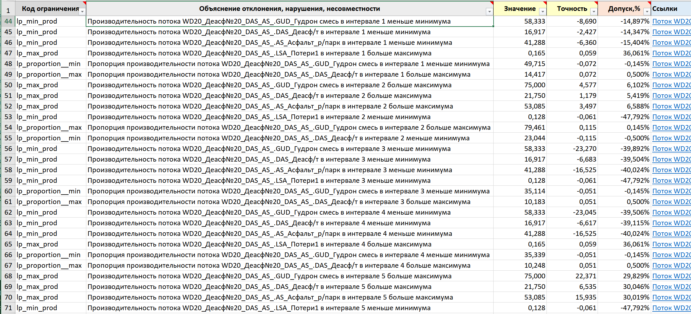 Рисунок. Фрагмент объяснений Решателя NLP. Объяснение проблем с потоками
