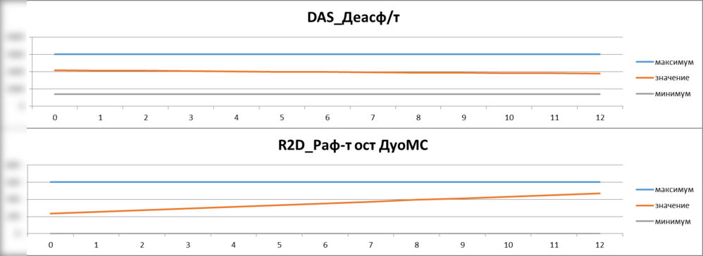 Деасфальтизации гудрона, состоящих из установок деасфальтизации гудрона «WD20_Деасф№20», «WD21_Деасф№21», «WD22_ДУОСОЛ», потребляющие гудрон убывающим итогом из емкости «GUD_Гудрон смесь», для производства деасфальтизатов и рафинатов остаточных дуосол очистки: «DAS_Деасф/т» на установках «WD20_Деасф№20», «WD21_Деасф№21» с выработкой попутного продукта – асфальта «AS_Асфальт_р/парк», и «R1D_Раф-т ост Дуо», «R2D_Раф-т ост ДуоМС», «RDN_Раф ост.ДуоSN-800», «RD2_Раф-т ост в.3» на разных операциях установок «WD22_ДУОСОЛ», отличающихся сырьем, с выработкой попутного продукта – экстракта «E1D_Экстракт ост.Дуо», причем совместно используемый резервуарный парк под рафинаты дуосол очистки учитывается общей емкостью «Р424+Р425_Р.ост.Дуо».