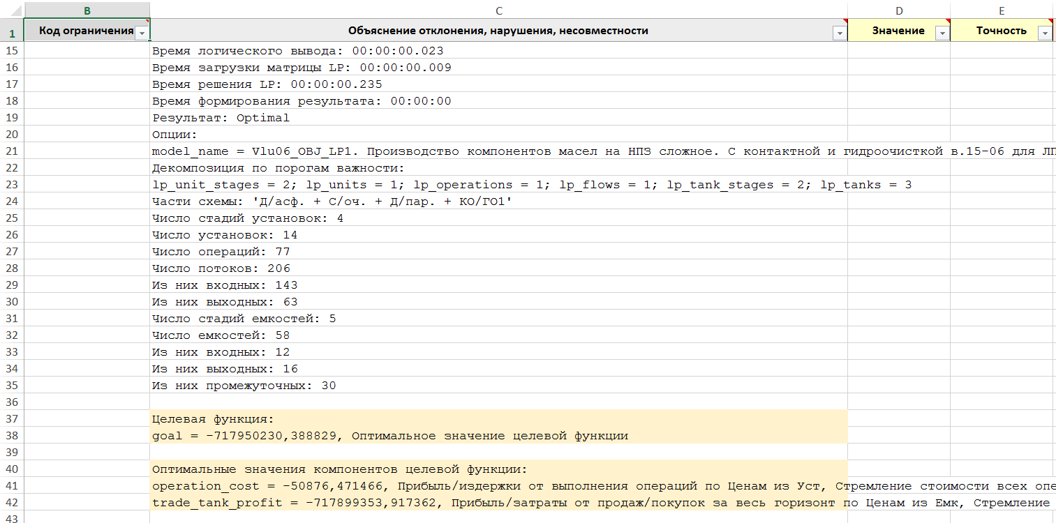 Стадий 4, Установок 14, Операций 77, Емкостей 58, Интервалов 1, Переменных 557, Ограничений 1403.