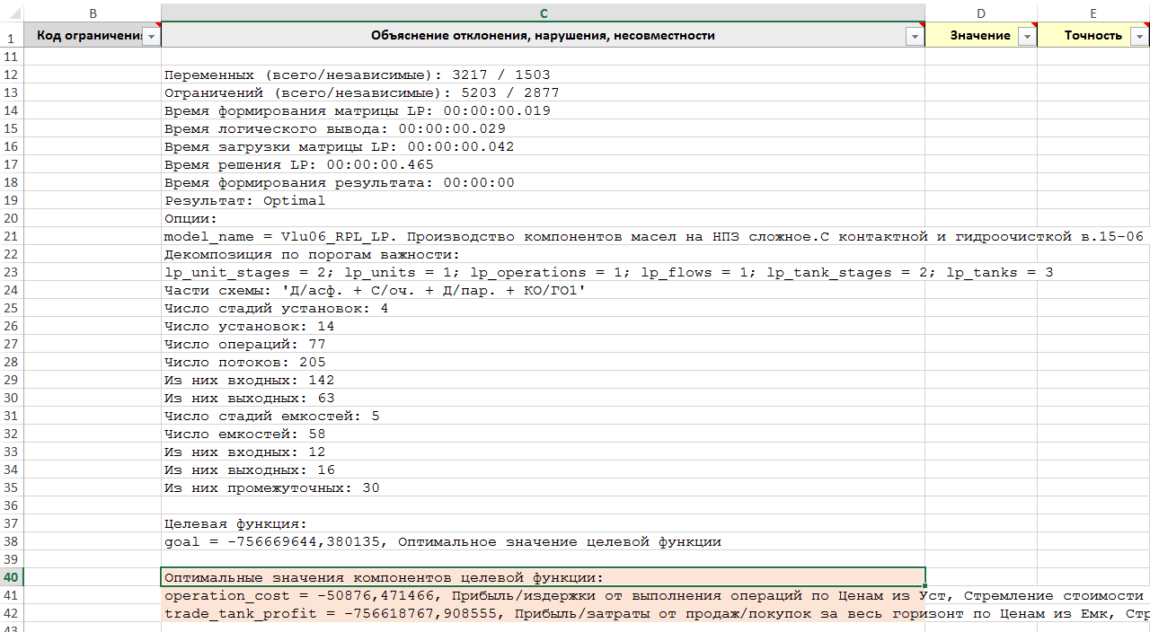 Рисунок. Фрагмент трассы объяснений Решателя LP