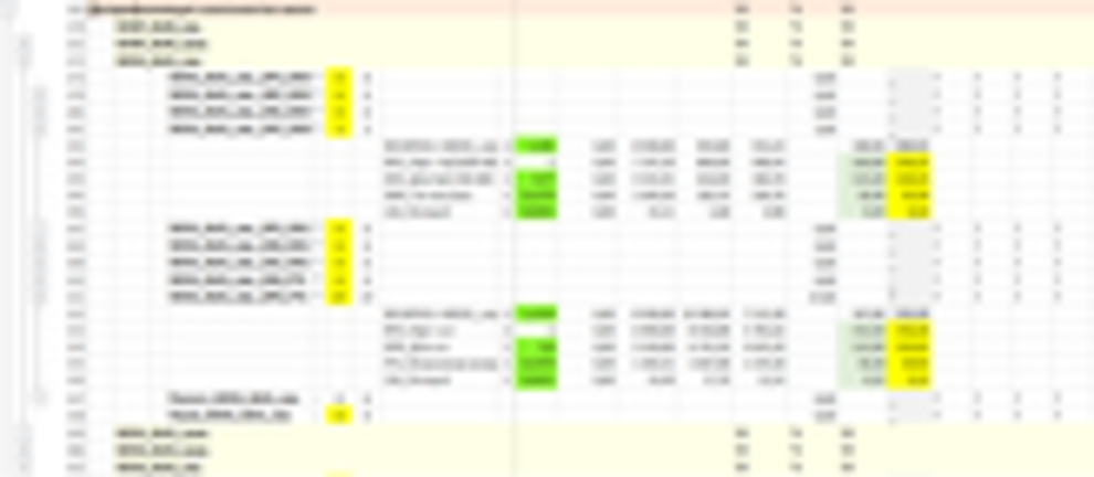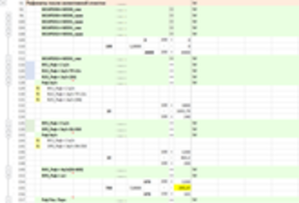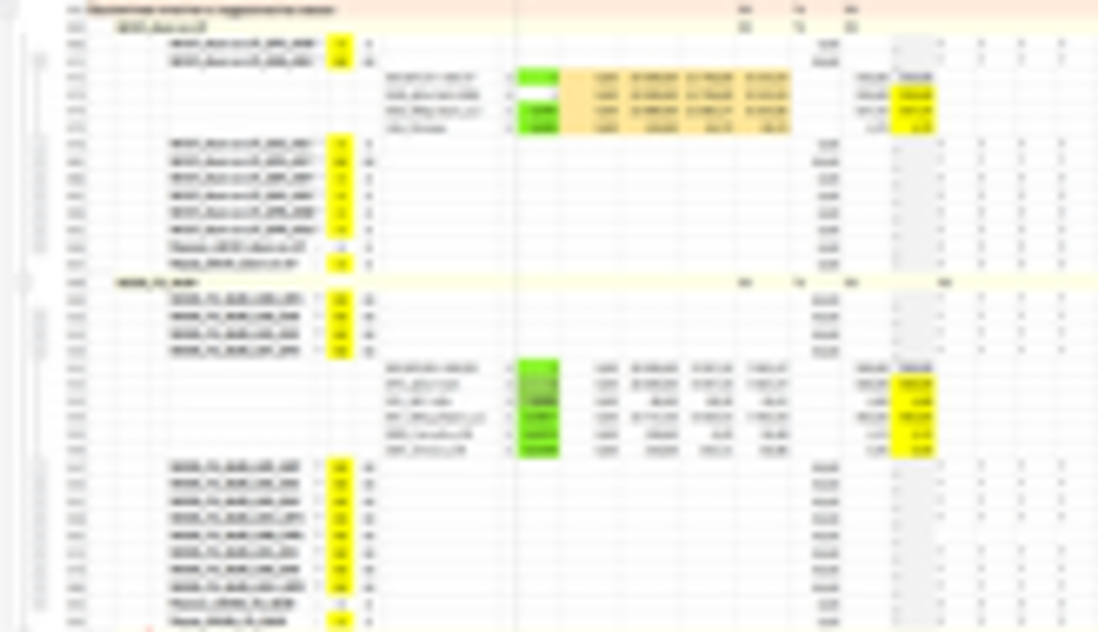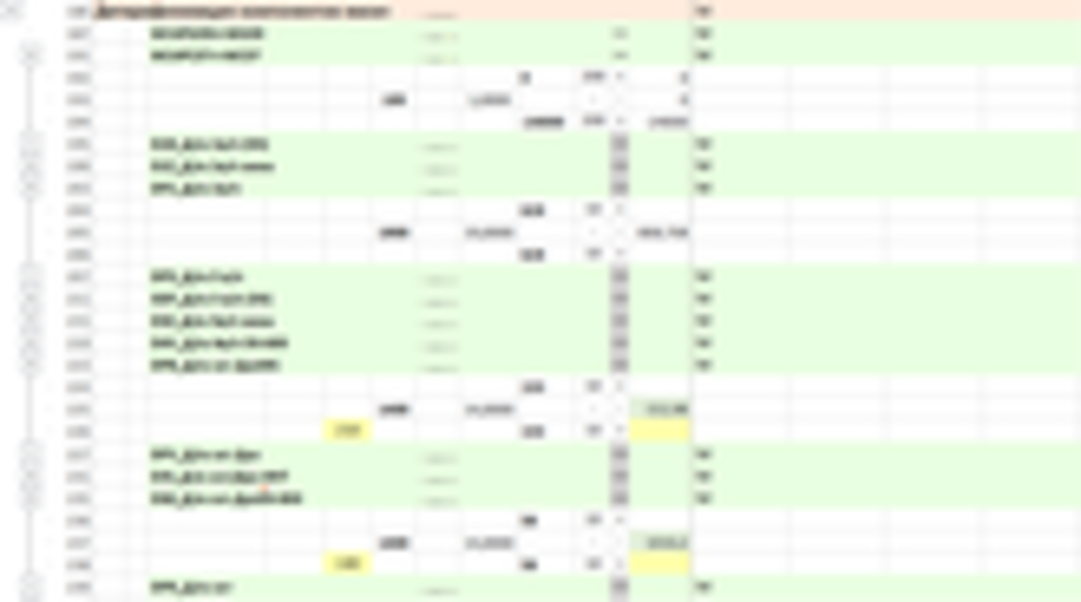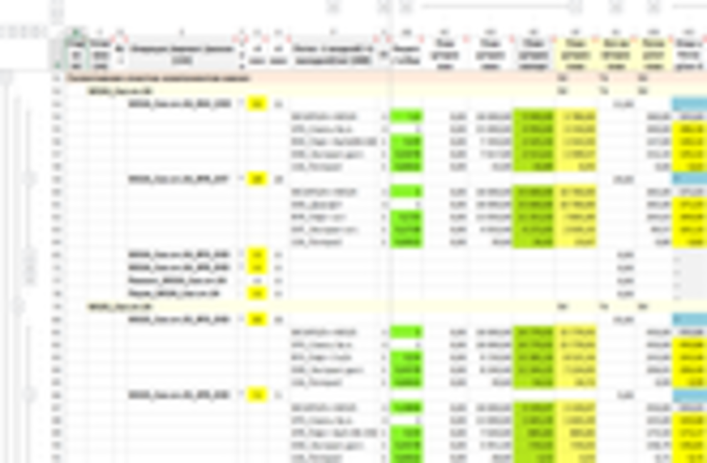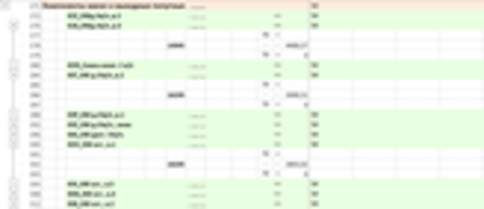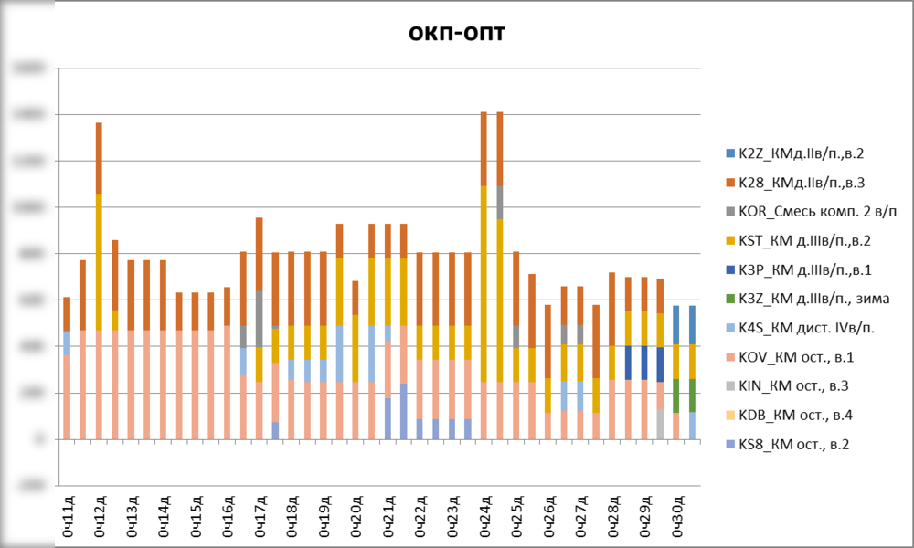 Вычтенные из плана производства объемы переработок (выделено светло-желтым) за первую декаду, для сравнения – исходный план (выделен желто-зеленым) и работа операций на конец первой декады (выделено голубым)