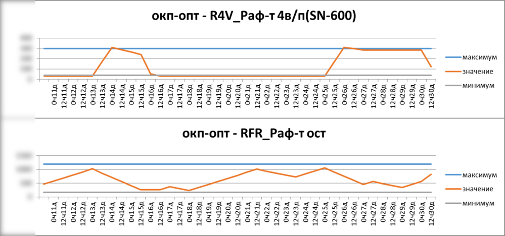 Подробный учет условий перепланирования – заданный факт работы за первую декаду, имеющий отклонения от плана производства.