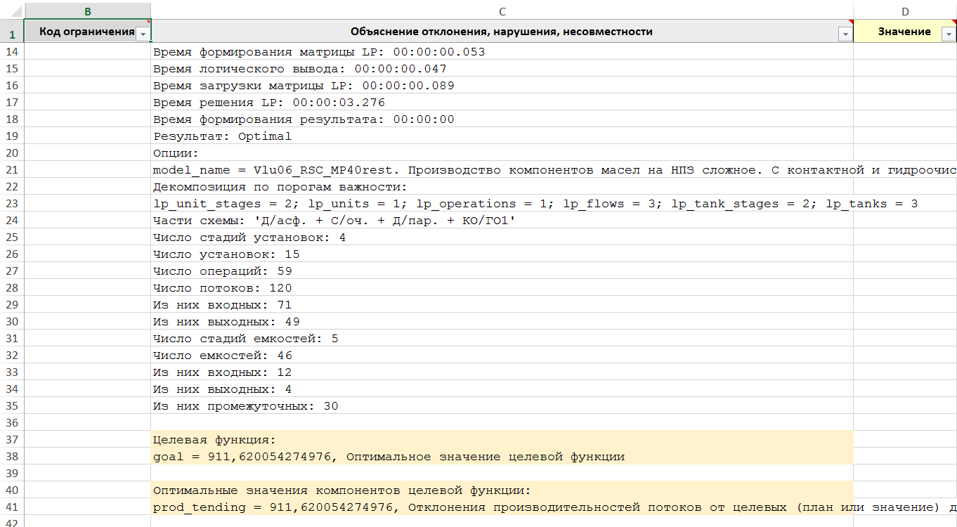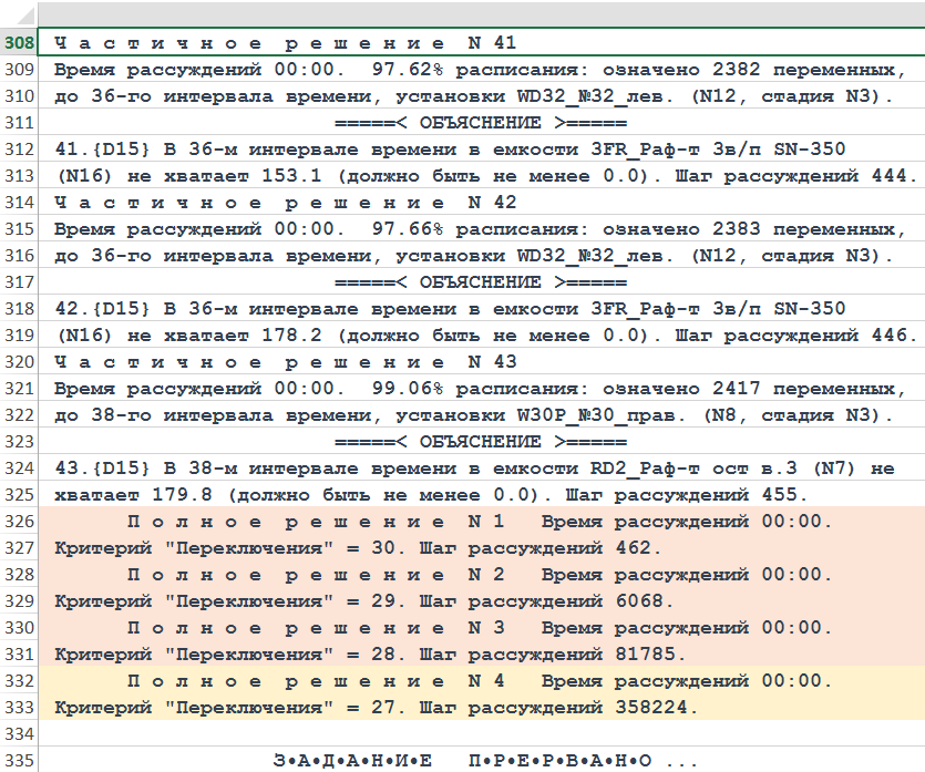 Рисунок. Фрагмент трассы объяснений Решателя LP