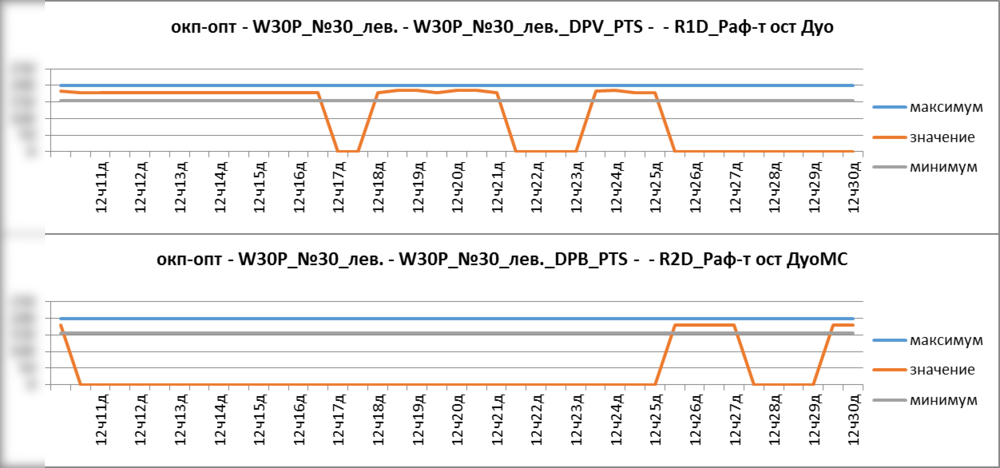 Рисунок. Фрагмент отчета «время вниз» от установок
