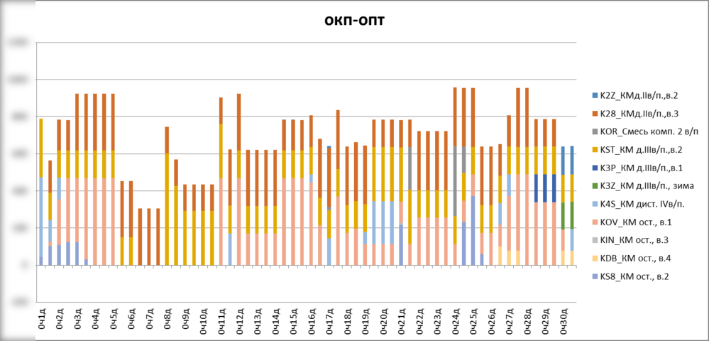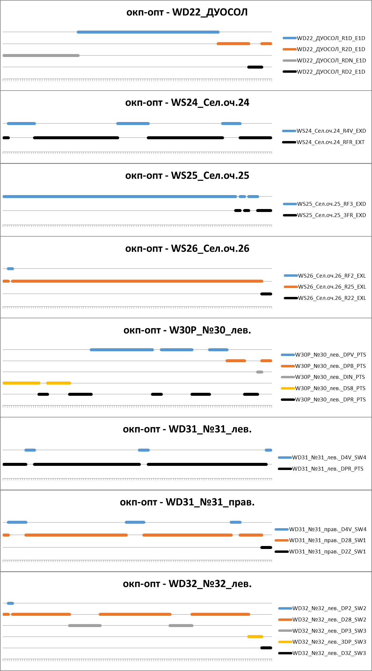 Рисунок. Фрагмент расписания выполнения операций