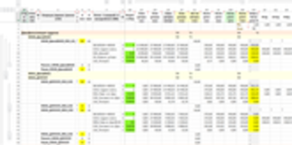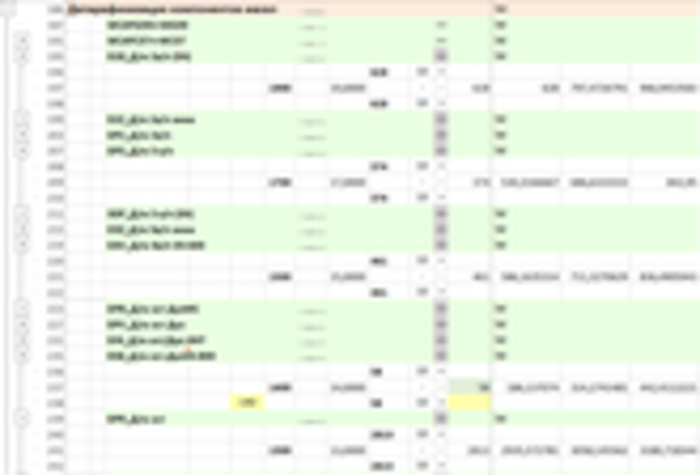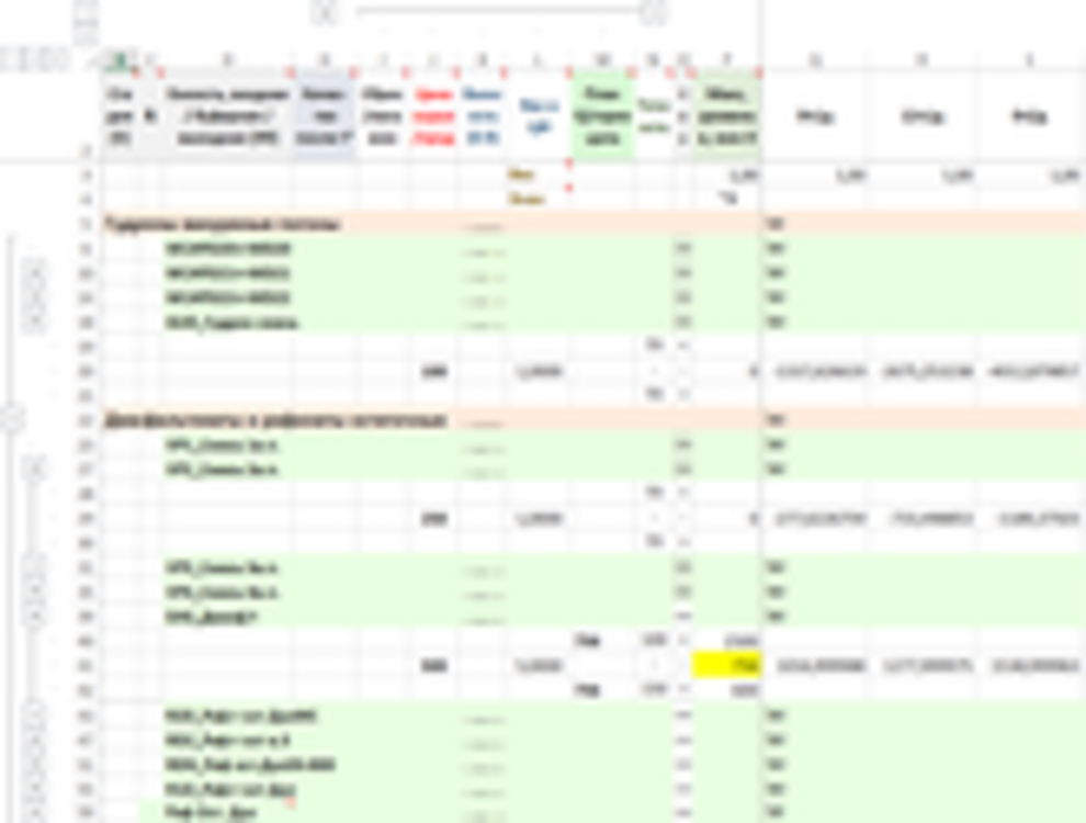 Заданная работа установок (выделено желтым) и объемы переработки (выделено желтым) за первую декаду – 20 смен (выделено голубым)