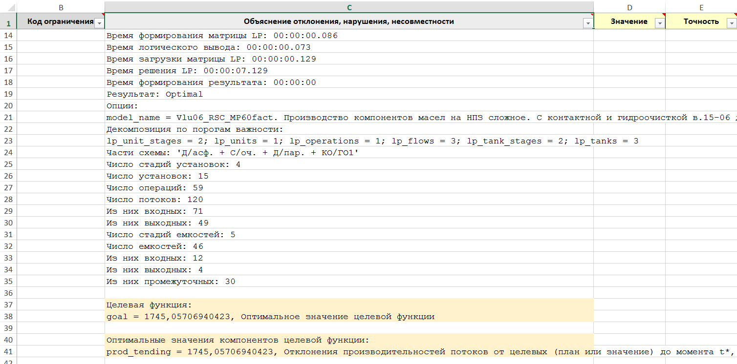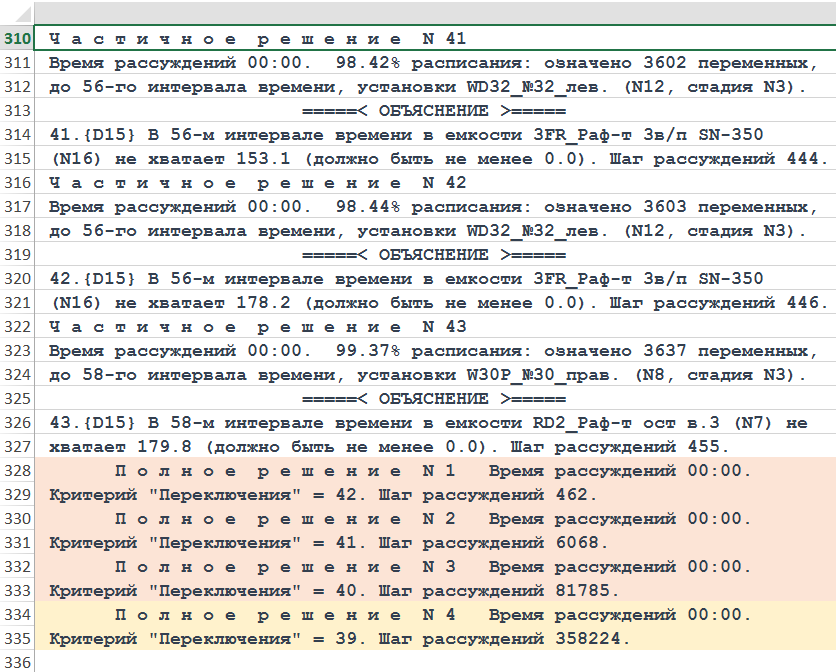 Рисунок. Фрагмент трассы объяснений Решателя LP