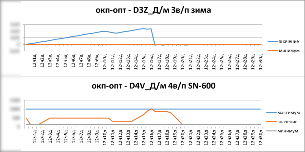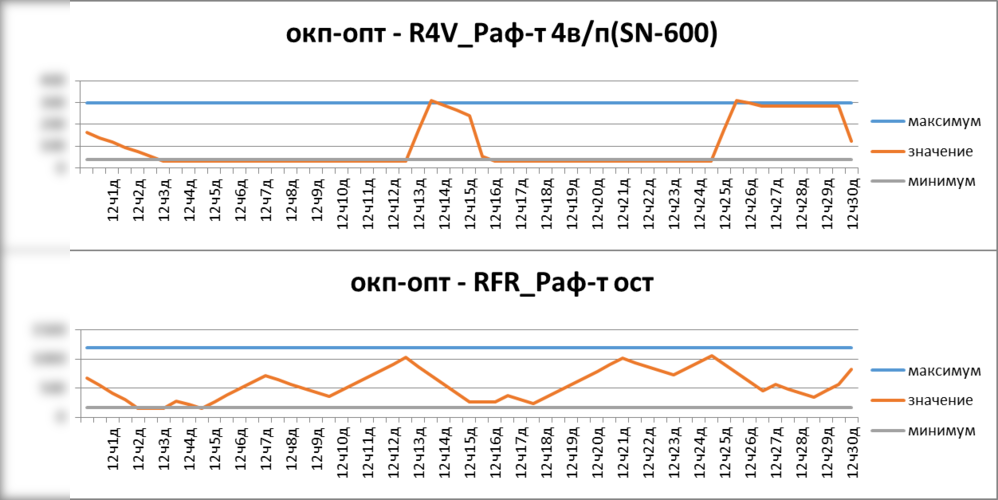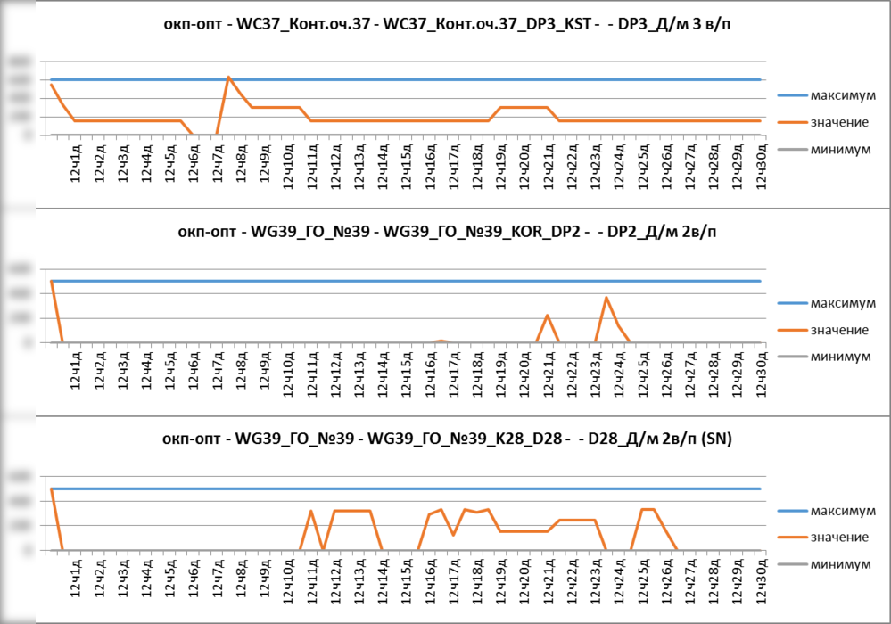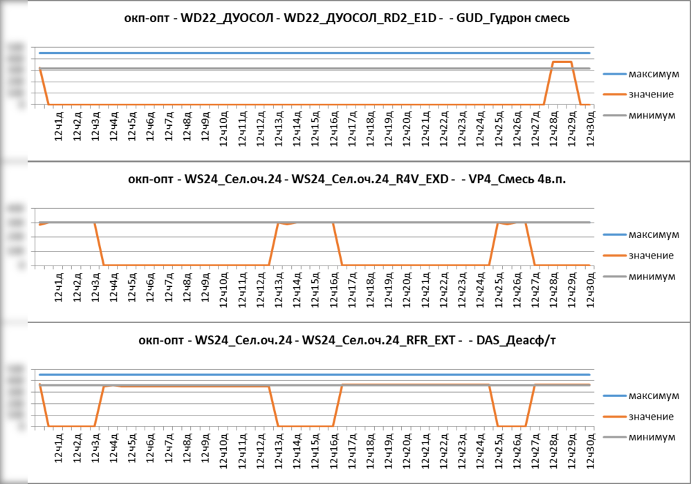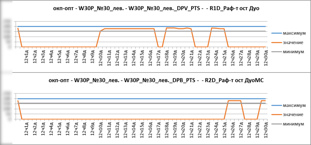 Рисунок. Фрагмент отчета «время вниз» от установок