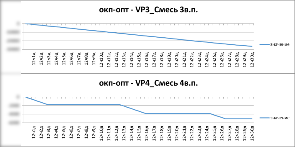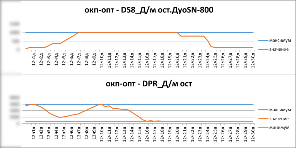 Подробный учет условий перепланирования – заданный факт работы за первую декаду, имеющий отклонения от плана производства.