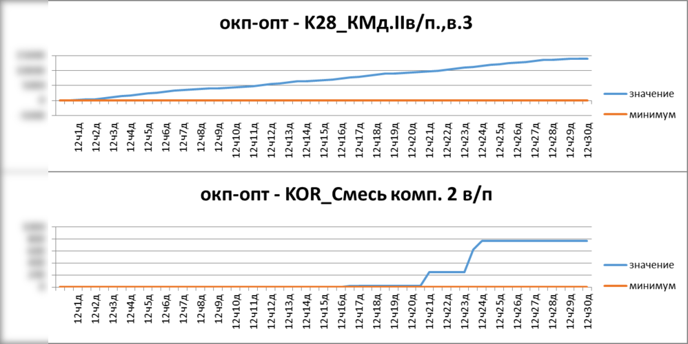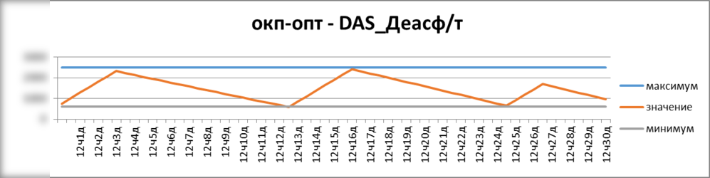Рисунок. Фрагмент расписания уровня запасов в емкостях