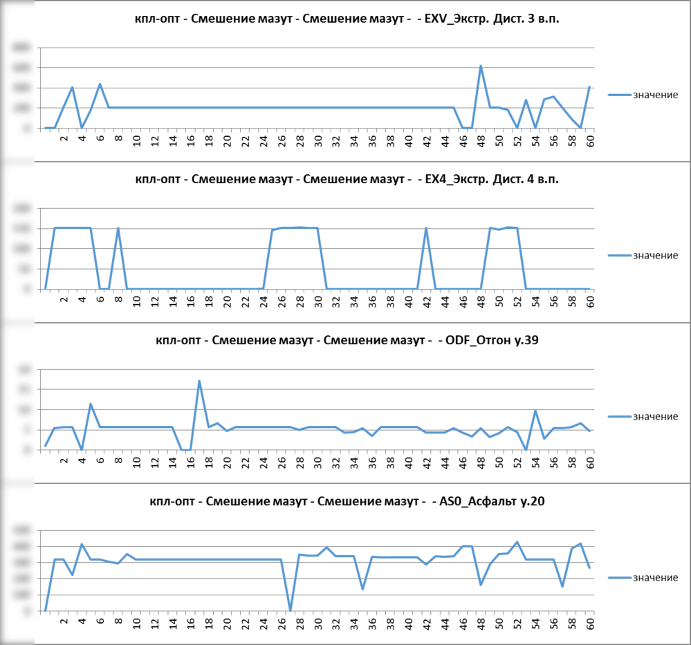 Сырьевые потоки для смешения принадлежащие производству компонентов масел моделируются установками, имеющими заданный график поступления сырья.
