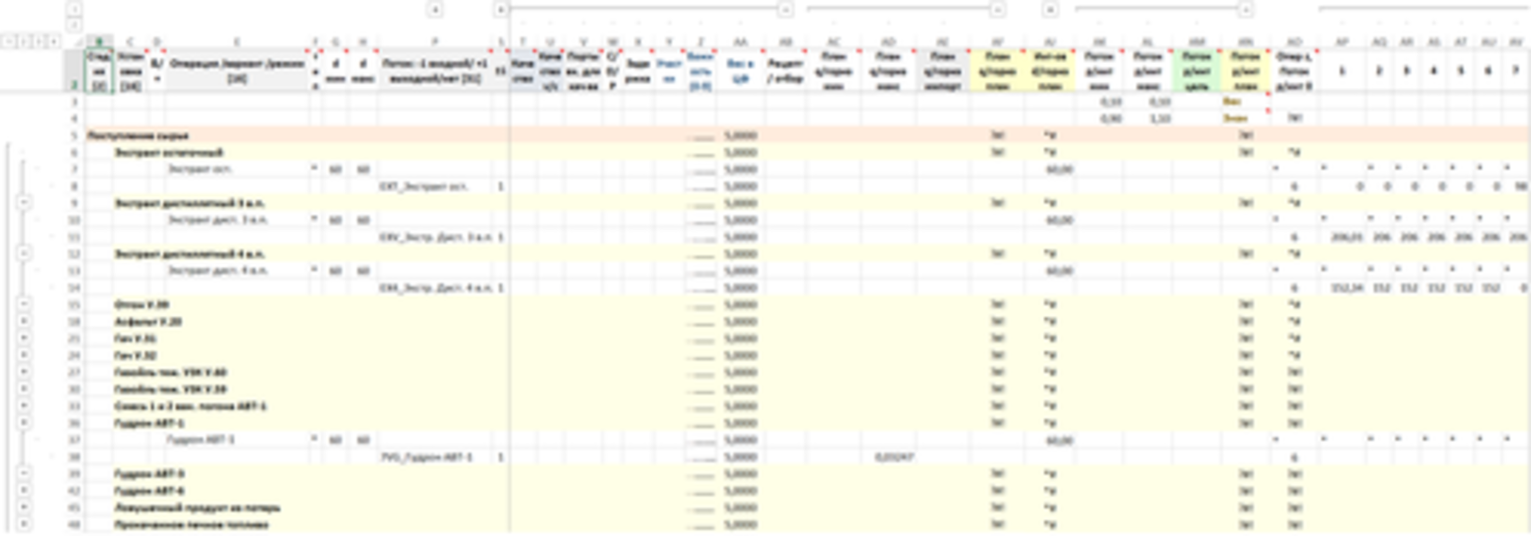 Показатели качества сырьевых потоков заданы исходными данными из RPMS и не изменяются.