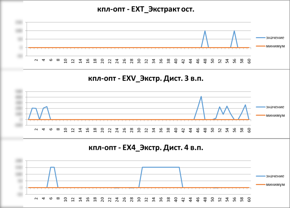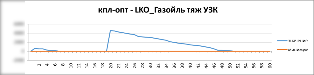 Рисунок. Фрагмент расписания уровня запасов в емкостях