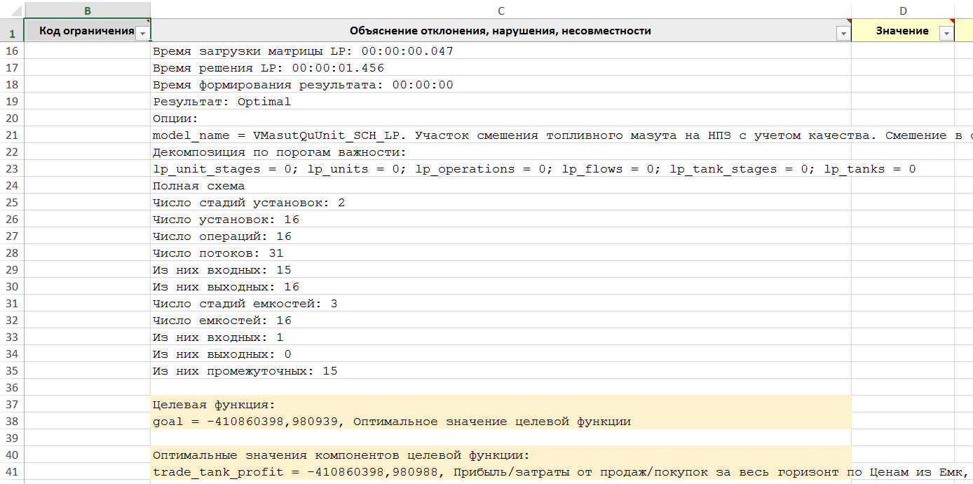 Рисунок. Фрагмент трассы объяснений Решателя LP