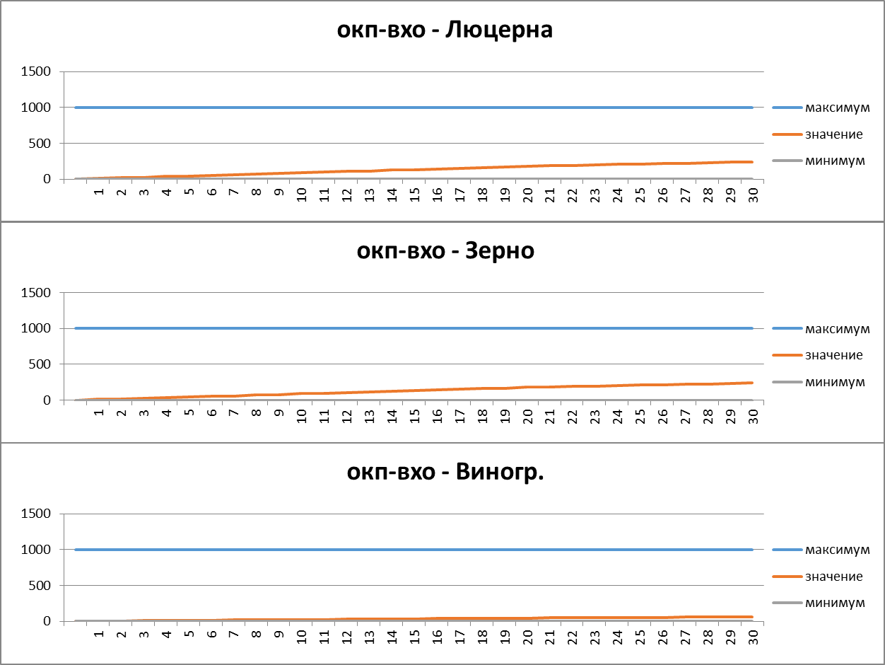 Вода, поступившая на культуры для орошения нарастающим итогом: